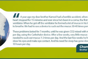"My dear brother Kamod was electrocuted and his heart stopped for 15 minutes. He is in a coma and 30-40 times per day his oxygen levels goes below 92% because of mucus in the airways.